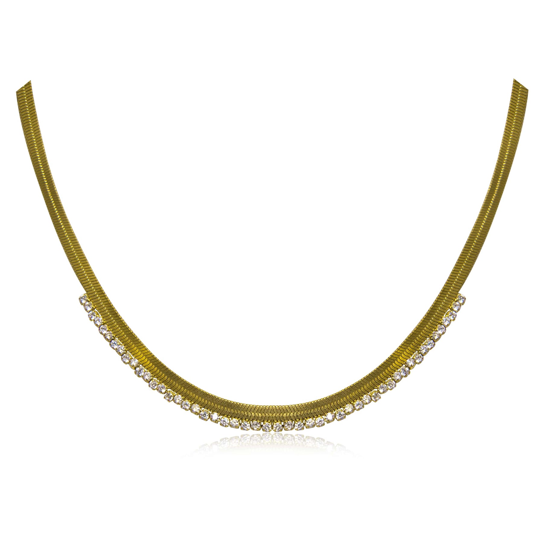 Our Aurelia Necklace features a super-luxe take on the classic herringbone chain, sparkling with round brilliant cut stones on the front for the ultimate fringe raindrop.  Layer this fancy herringbone with lightweight and delicate chains or wear it as the main focal point with any style wardrobe.