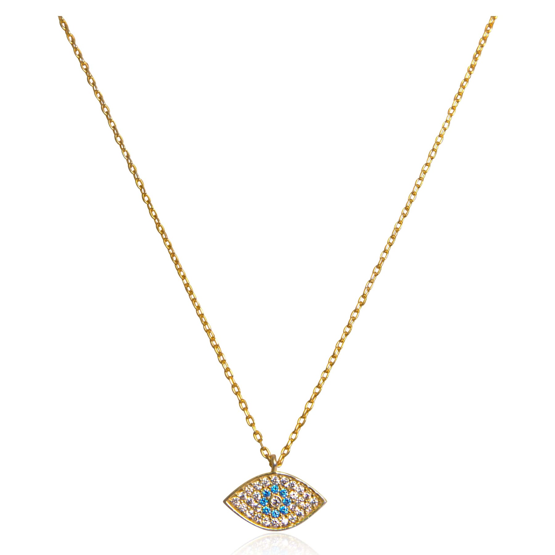 Rich rose gold plating over sterling silver gives this dainty evil eye necklace a glamorous look, glittering with colorful cubic zirconias in front. Keep protected from negative thoughts and enhance good luck as you look trendy wearing this pretty evil eye.
