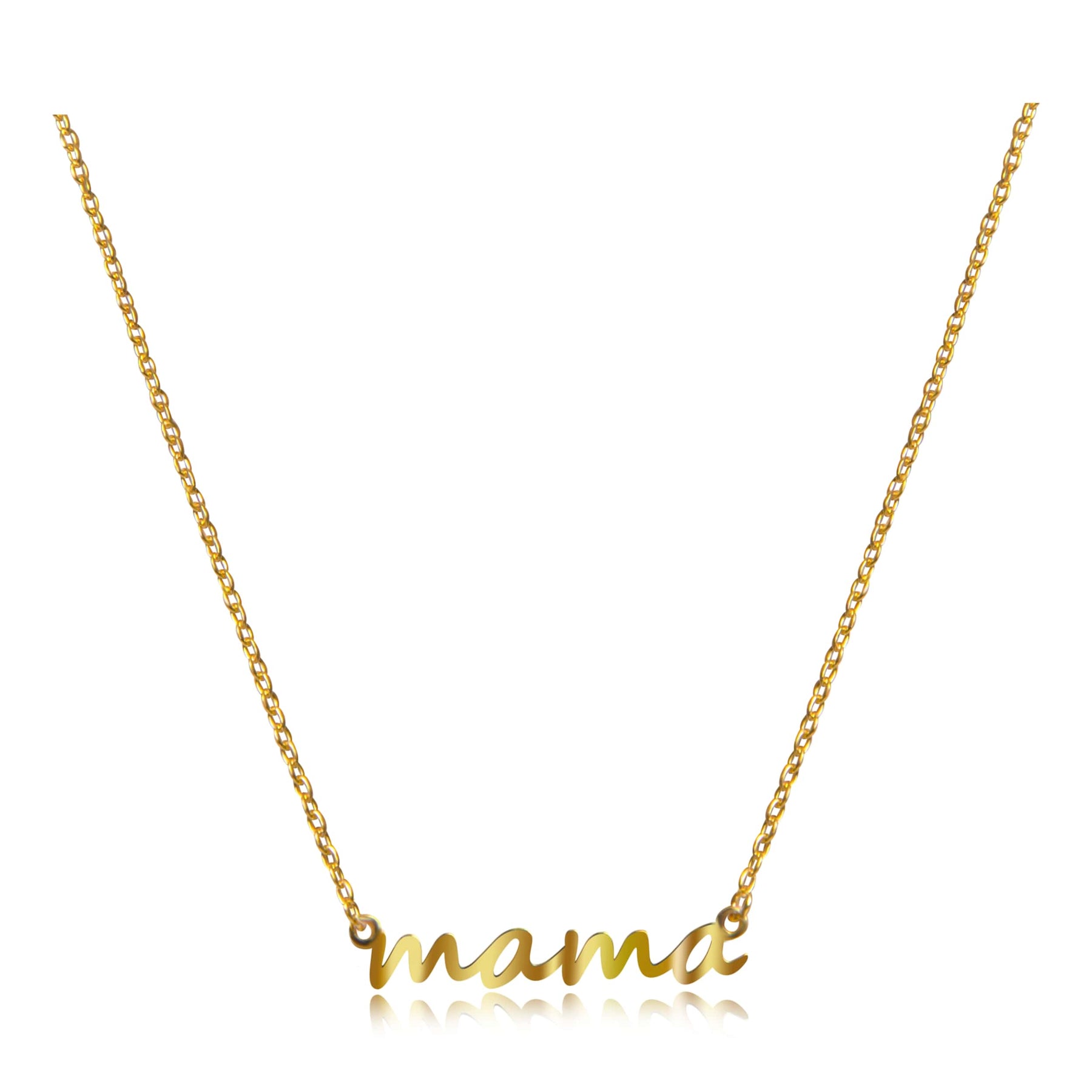 A delicate laser-cut “mama” nameplate charm is set on the front on a slinky chain, making this brightly polished necklace the perfect choice for a Mother's Day gift. The lightweight design allows this pretty mama necklace to float on the collarbone when worn, great for casual, work, or night attire.