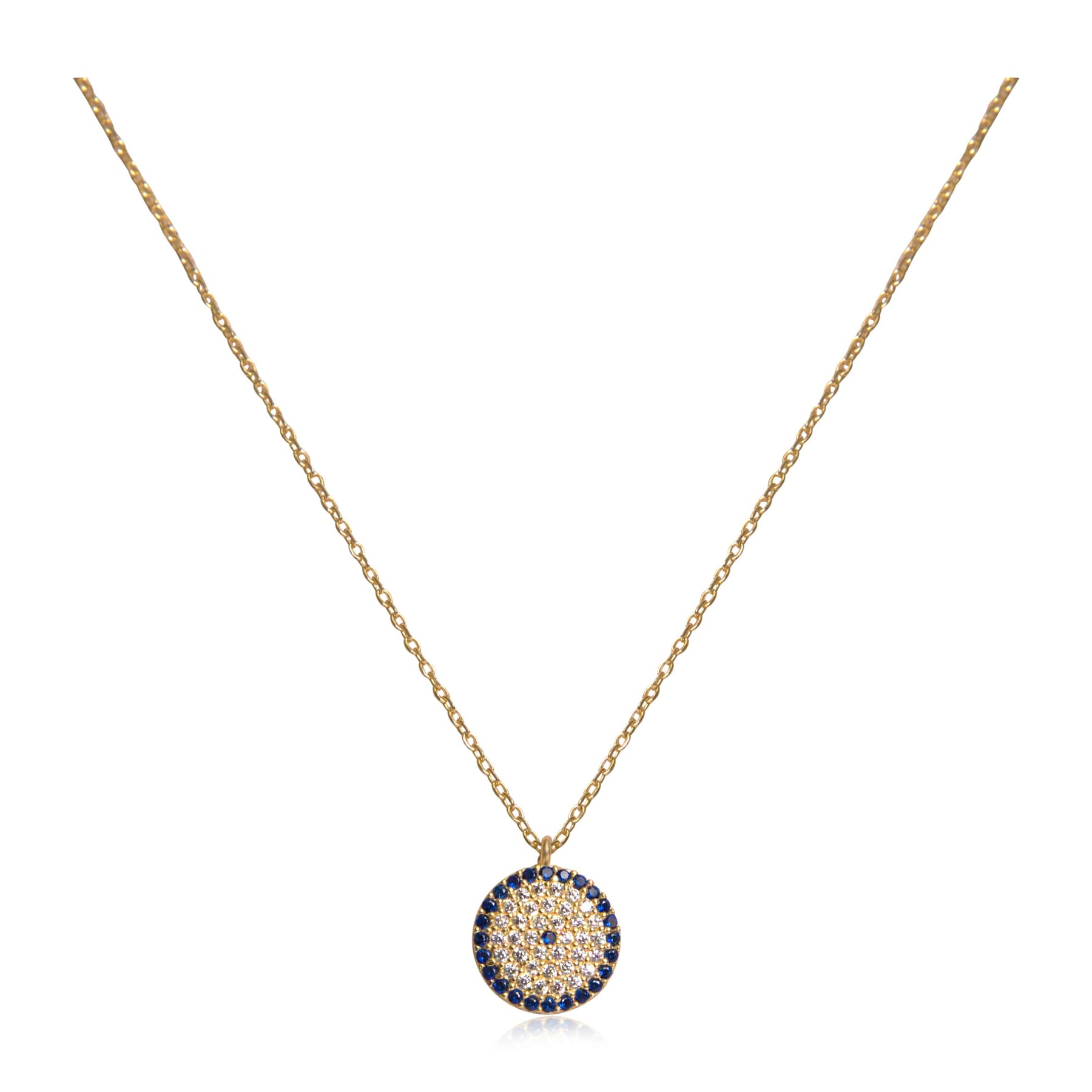 Bring the cultural significance of the evil eye with our beautiful Zaria Necklace, featuring sparkling stones in the middle in a micro pave; a glamorous boost to this ancient talisman. This enchanting pendant sits centered on a cable chain, making it perfect for wearing with different outfits.