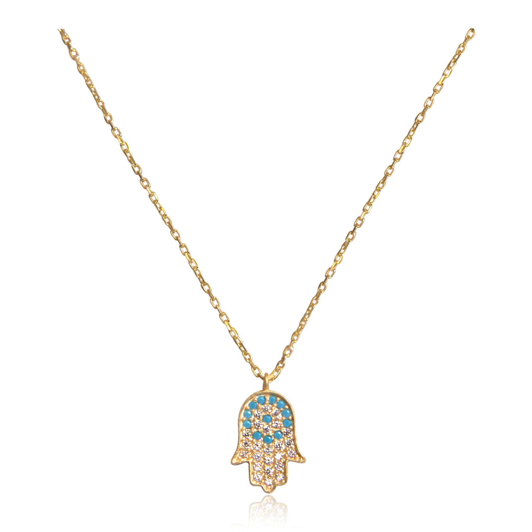 Allow the hamsa hand to guide you through life and its ups and downs, a powerful talisman of protection as it wards off bad vibrations and brings luck and positivity. Our beautiful Alessiah Hamsa Necklace is finely crafted in brightly polished with sparkling stones, giving it added glamor.