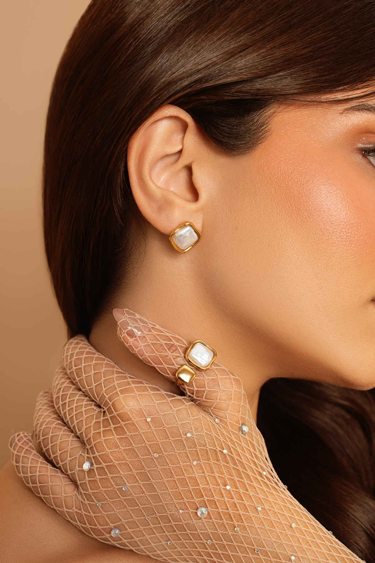 Icon Studs: Soft, luminous, and effortlessly chic — these square-cut gemstone studs are framed in a sleek gold bezel for a timeless yet modern look. Lightweight and versatile, they’re perfect for everyday wear while still adding a subtle statement to any outfit. A must-have staple for effortless elegance.