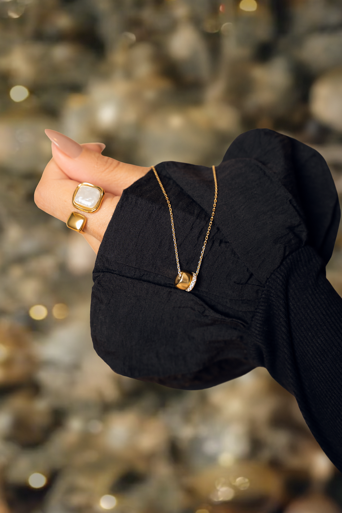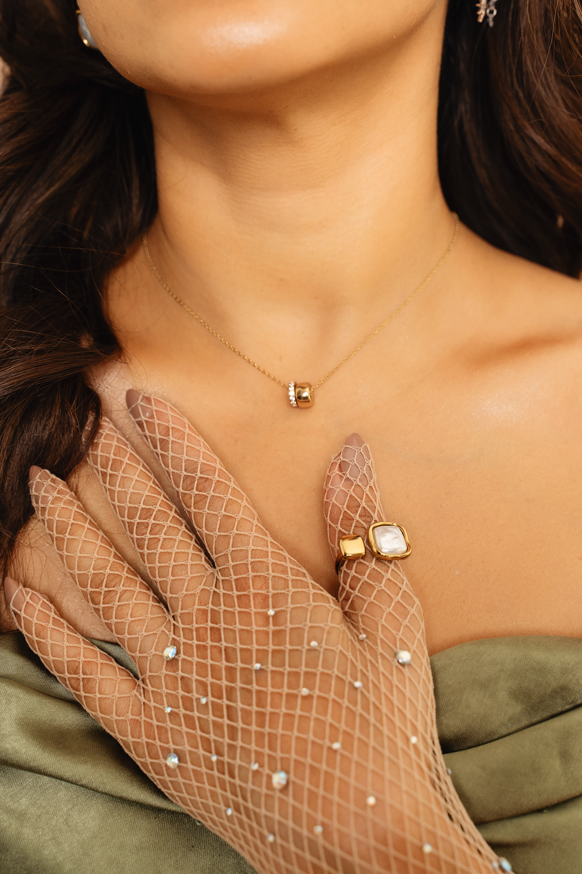 Icon Necklace: This elegant gold pendant necklace features a sleek, high-shine rectangular charm accented with subtle sparkle for the perfect balance of minimal and statement. Designed on a delicate chain, it layers effortlessly or shines beautifully on its own—an elevated everyday piece made to transition from day to night with ease. (16-18")